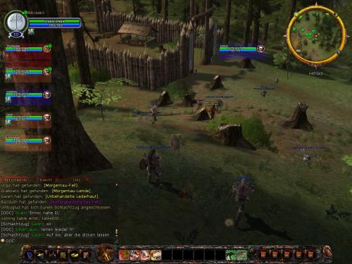 auf bullenrasslers wiese metzelten wir spinnen, wölfe und sonstiges getier bis wir dem ufer des brandyweins nach norden folgten. dort trafen wir auf ein orknest, dass wir kurz entschlossen dem erdboden gleich machten. wir fackelten alles ab und zogen johlend im blutrausch davon. die einwohner haferguts dankten es uns. unter den gefährten waren unter anderem Thunrindir, Digimortale und Agared. es war ein fröhliches schlachtfest.