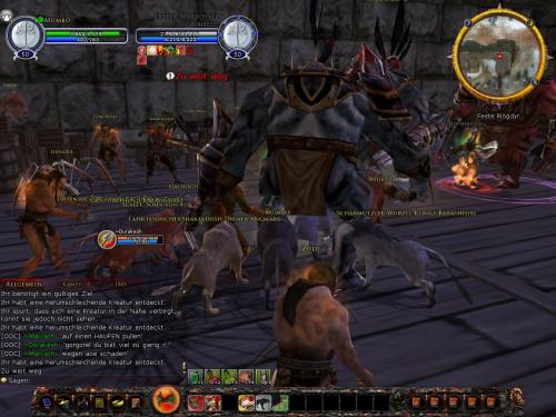 schlachtzug fällt über ringdyr her. mumbo mittendrin. ein gemetzel allererster güte. dank dreier trolle brutalstes geknüppel - von taktik konnte ich wenig erkennen. einfach rein und draufhauen bis kein gras mehr wächst. aber sowas macht auch mal spass...hrhr
