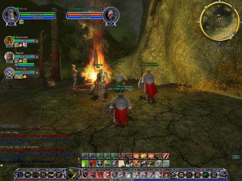 Überraschenderweise fiel es uns nicht sonderlich schwer den Hünen auszuschalten. Der Weg dorthin war weitaus schwieriger zu meistern. Mit Hilfe von Erlas flüchteten wir nach Rhunenlad und waren bereits wenig später am Ram Duath, um fette Lindwürmer auszumerzen. Einer dieser zahllosen Aufträge der Dunedain aus Esteldin. Ein willkommener Ausklang.